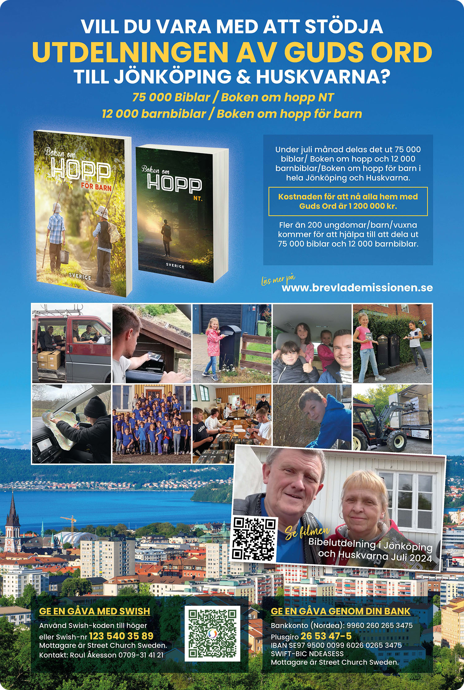 Märk gåva: ”Biblar Jönköping" eller "Biblar Huskvarna" eller "Barnbiblar Jönköping" eller "Barnbiblar Huskvarna".